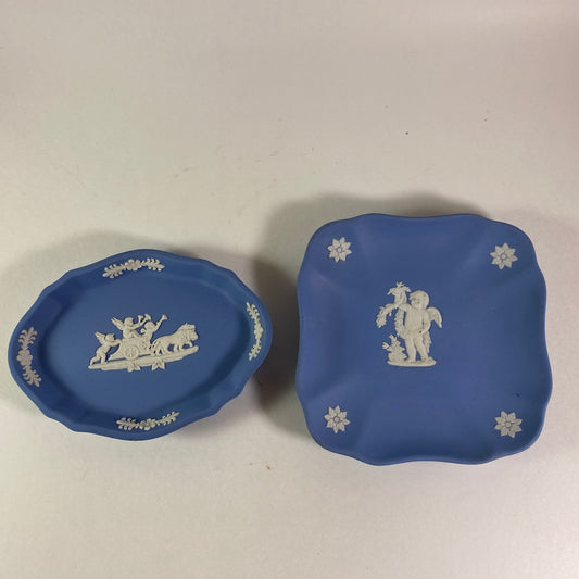 2 Wedgwood Blue Jasperware Pin dish trinkets with Cherubs design
