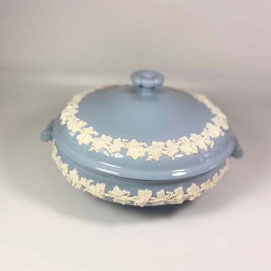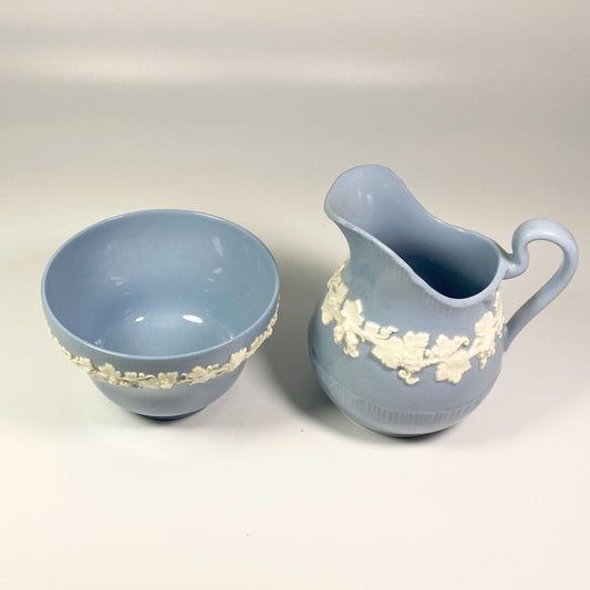 1950s Wedgwood Queensware Embossed Cream On Blue Creamer Sugar Bowl