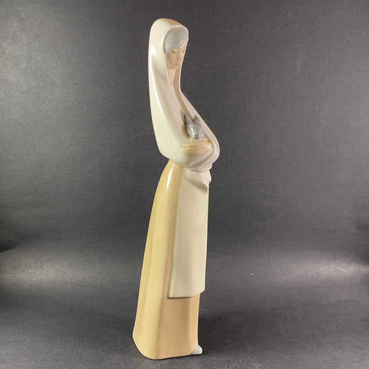 1985 Nao Made in Spain Porcelain tall Figurine Peasant Girl With Bunny Rabbit