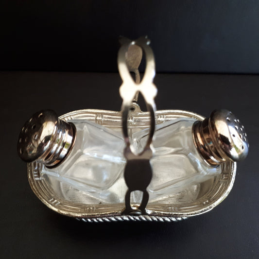 3 Piece Vintage Salt & Pepper shakers in Zinc Basket from Japan