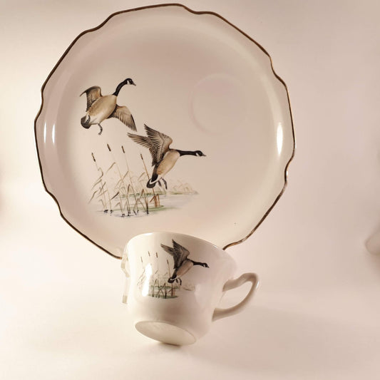 1950s Vintage Luncheon Plate & teacup Georgian USA, Geese flying 22 KT
