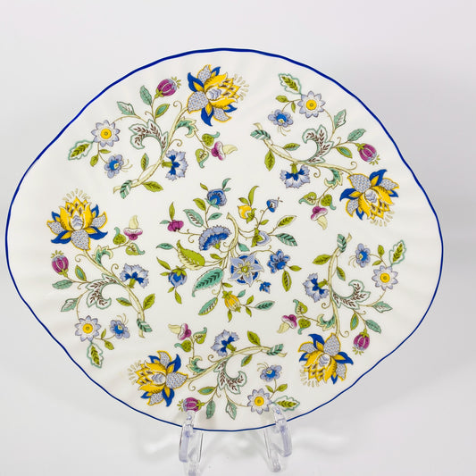 1993 Minton signed Haddon Hall Blue Cake Plate Bone China Made In England