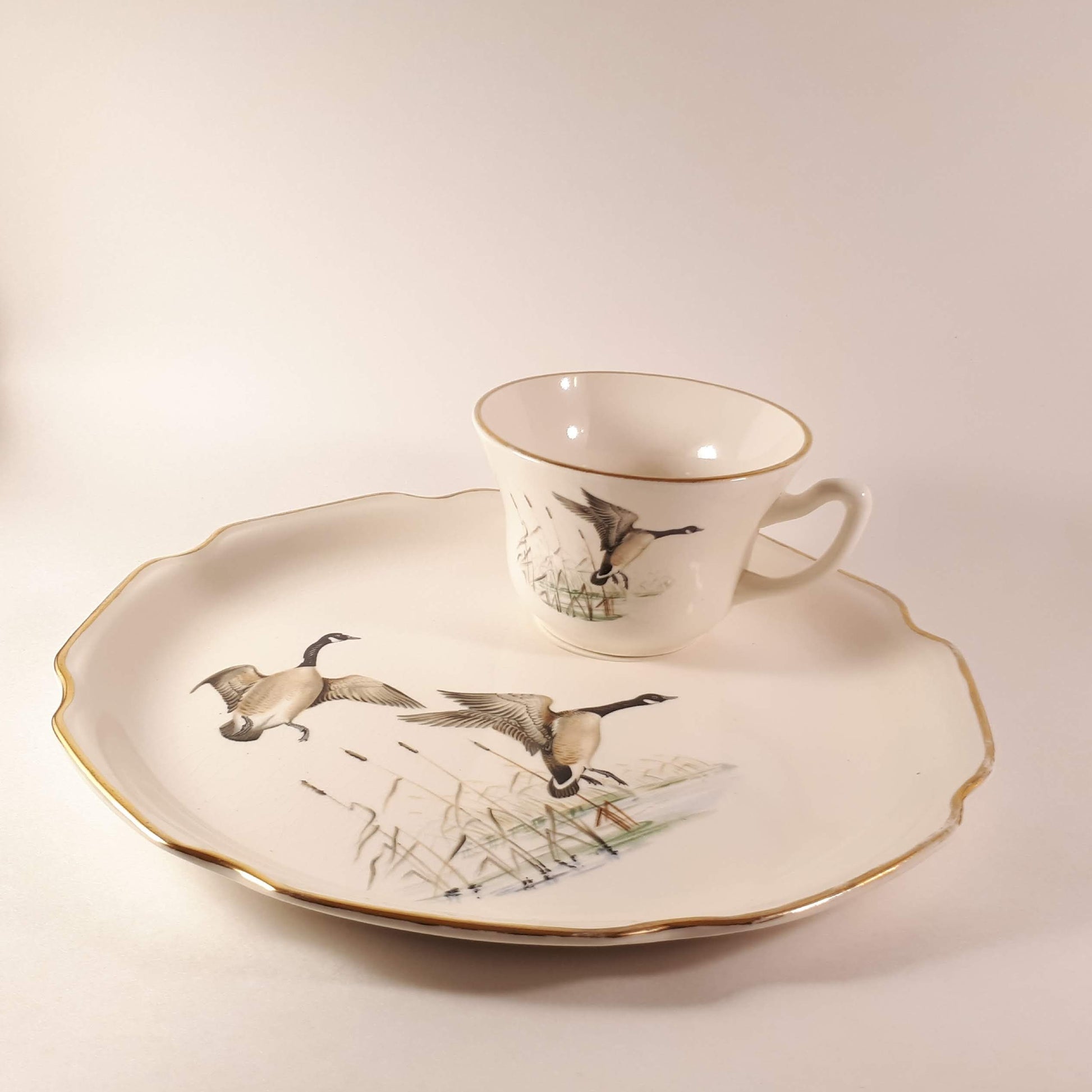 1950s Vintage Luncheon Plate & teacup Georgian USA, Geese flying 22 KT