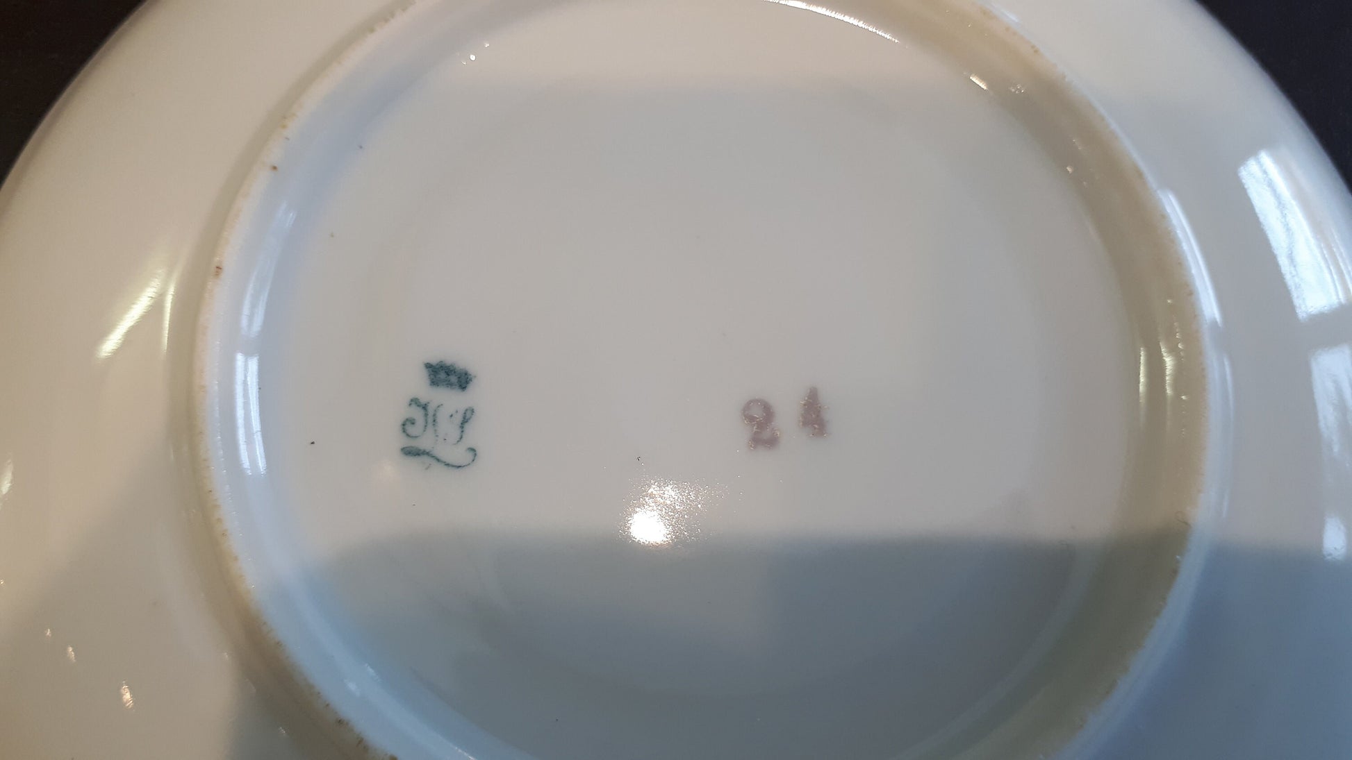 Please note this teacup and saucer resembles J&G Meakin Newark pattern. We are not sure about the brand, please check the stamp at the bottom of the cup and Saucer.
