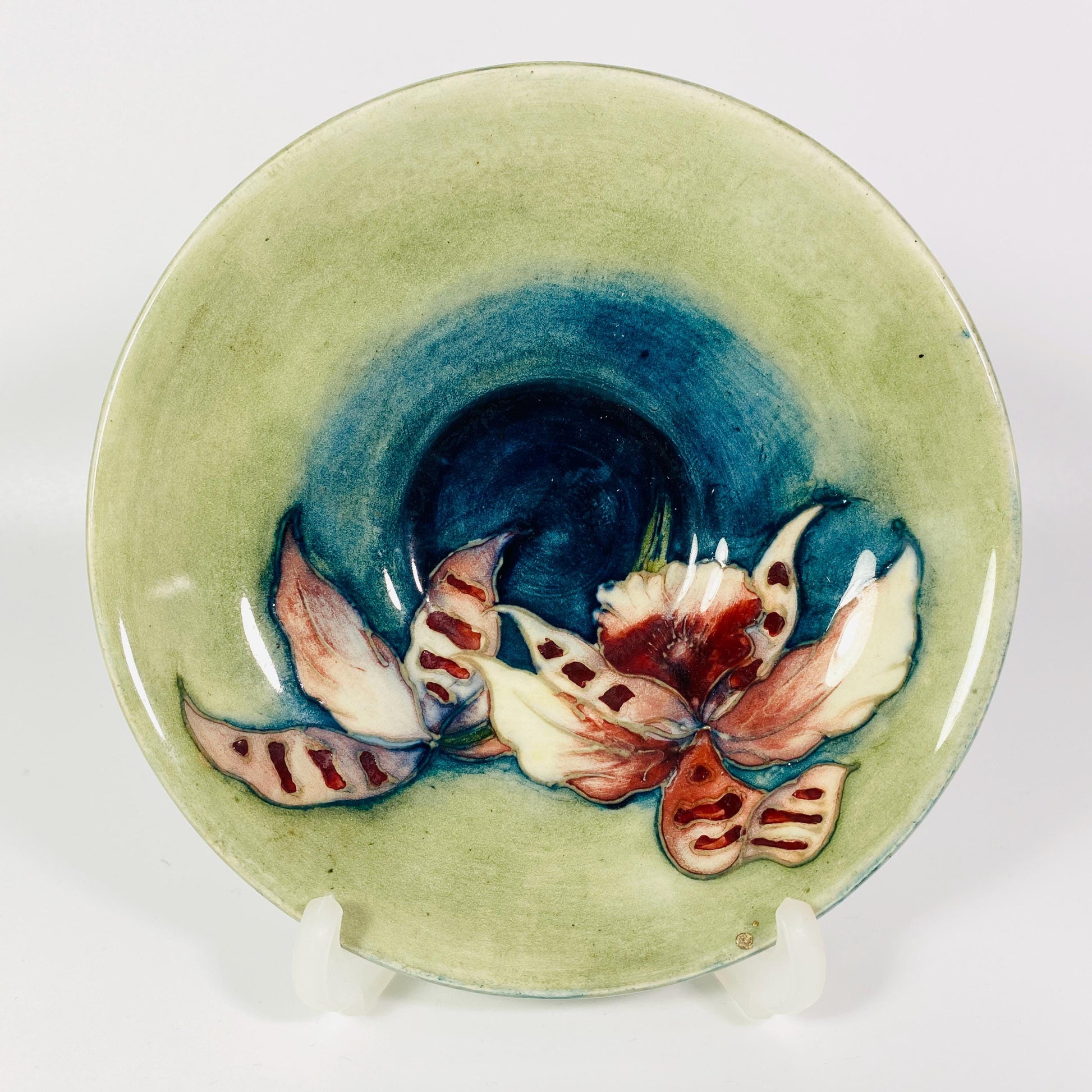 Antique Moorcroft Pottery 5.5 inchs Plate With Pink Iris floral design ,England