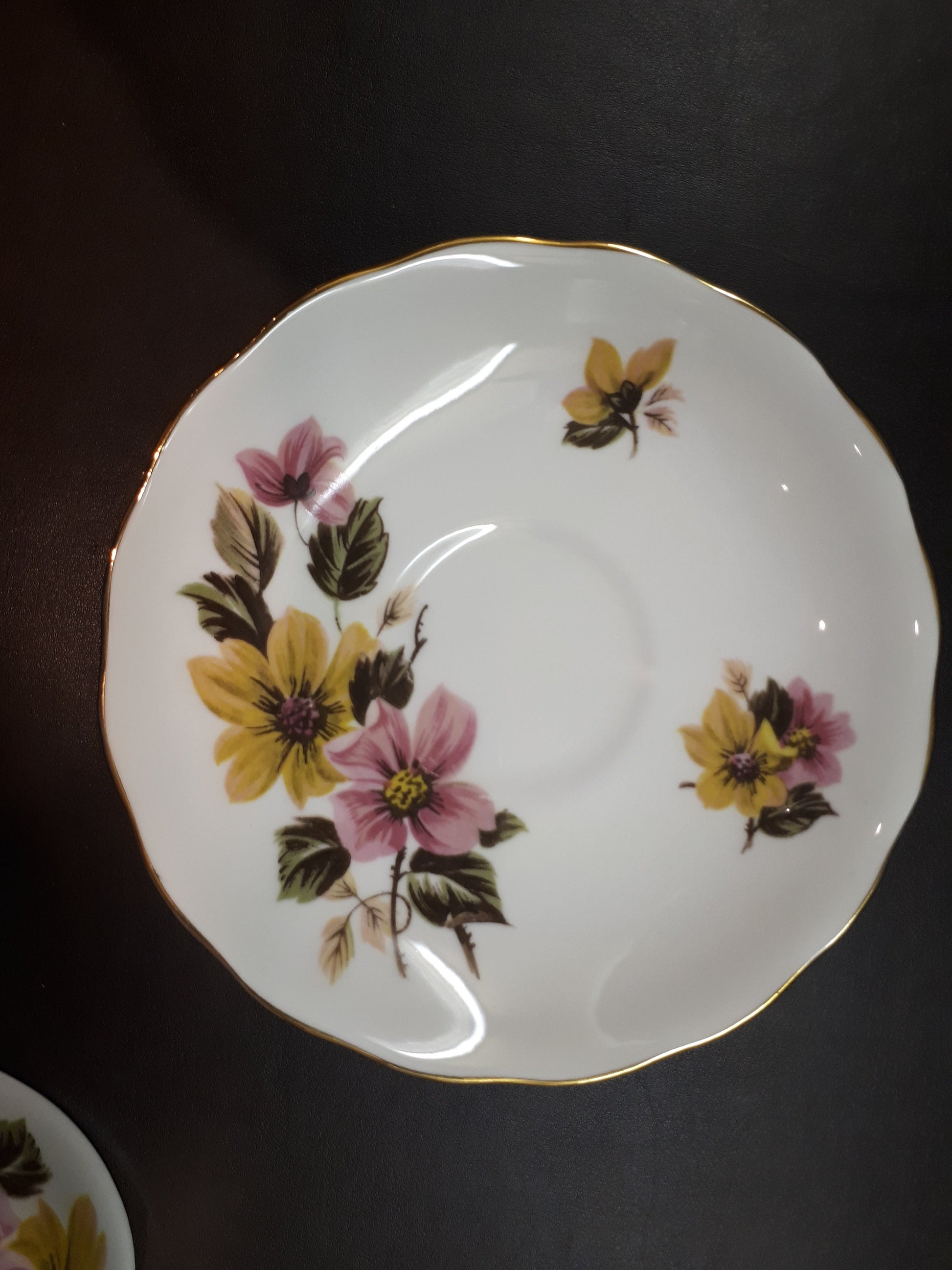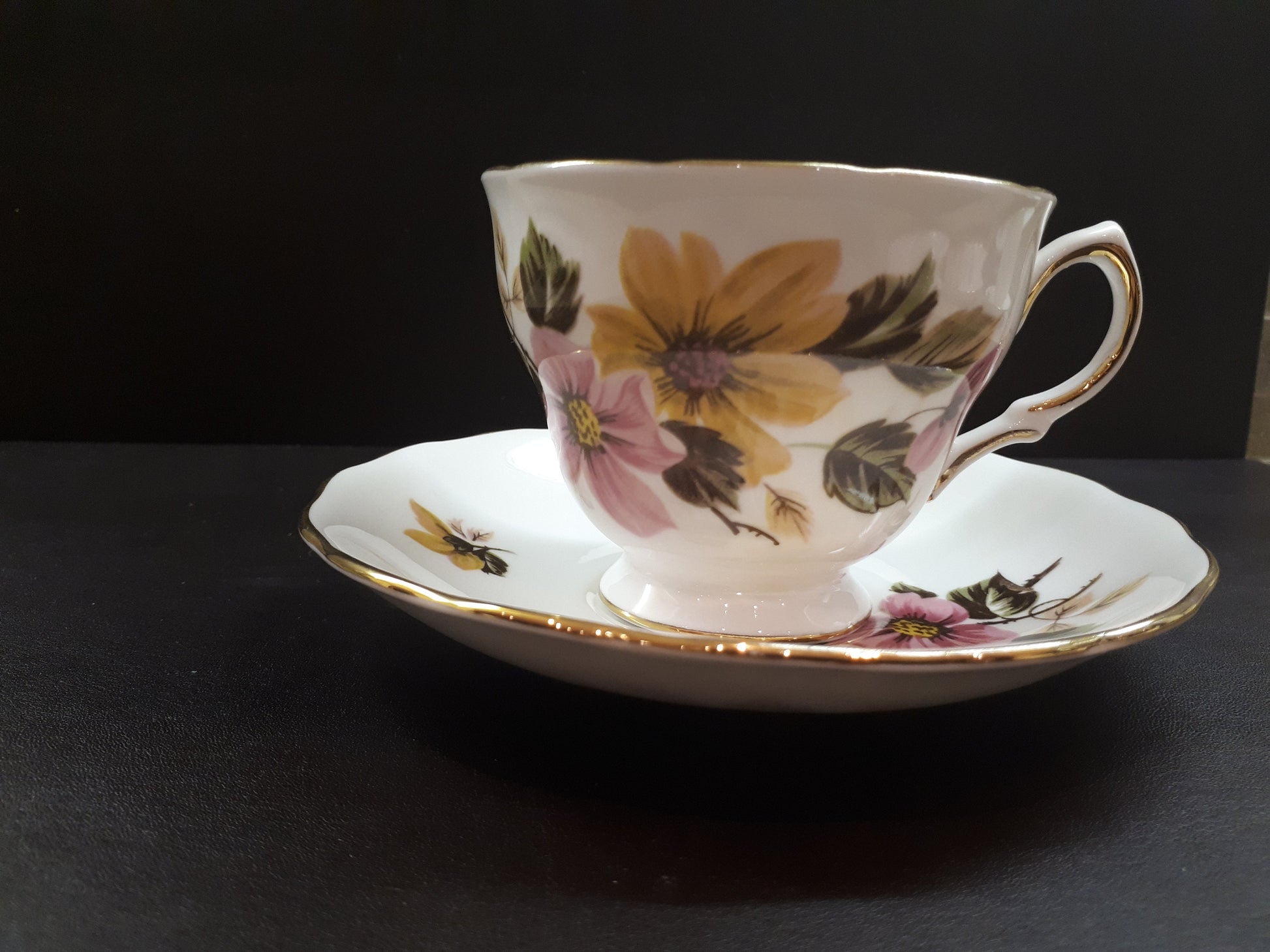 Beautiful Vintage bright colored yellow and Pink flowers will lift your moods higher. A great creation by Royal Vale in immaculate condition at a very reasonable price.