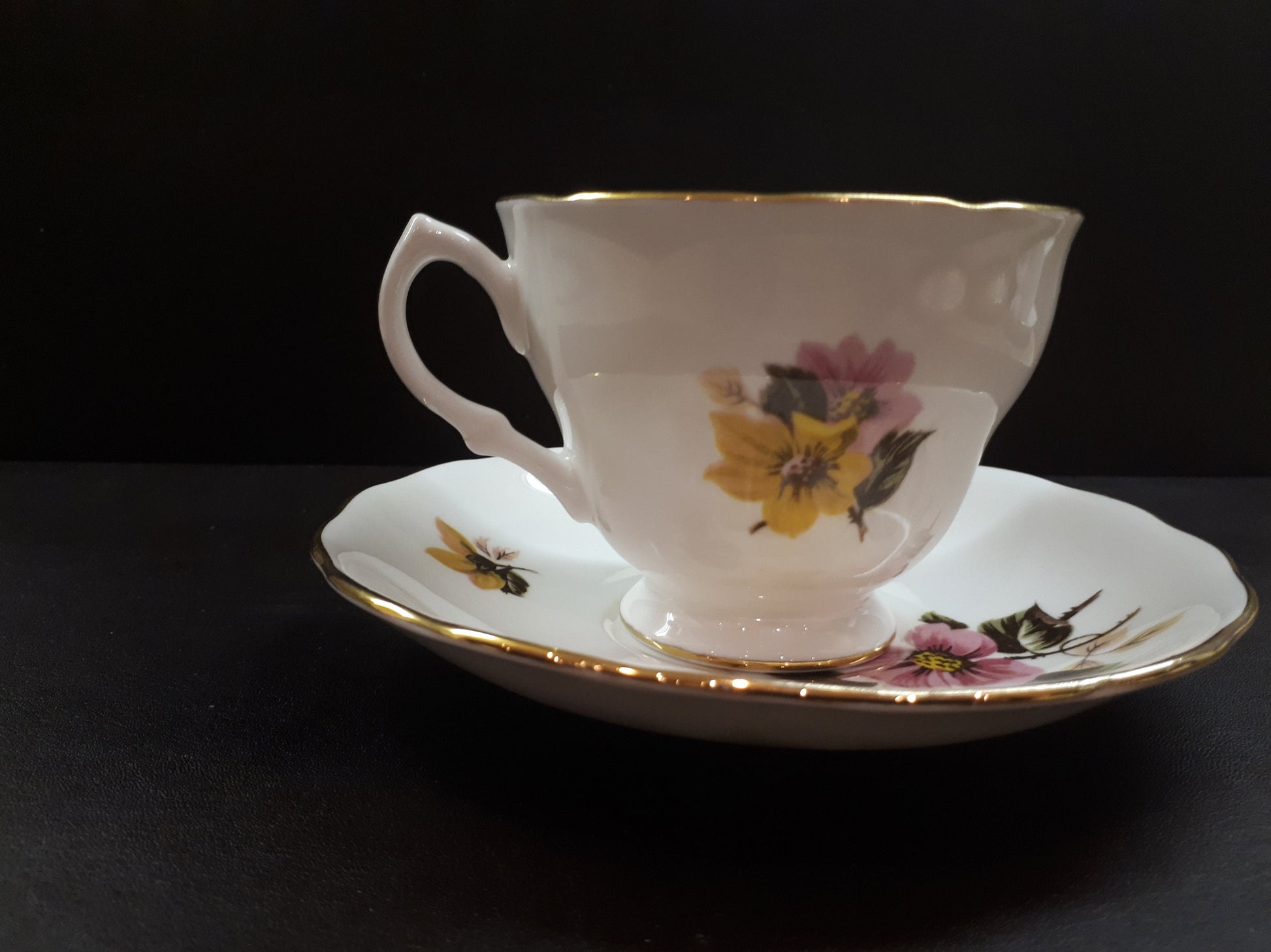 Royal Vale Ridgway Pink and Yellow Floral Tea Cup & Saucer 8218