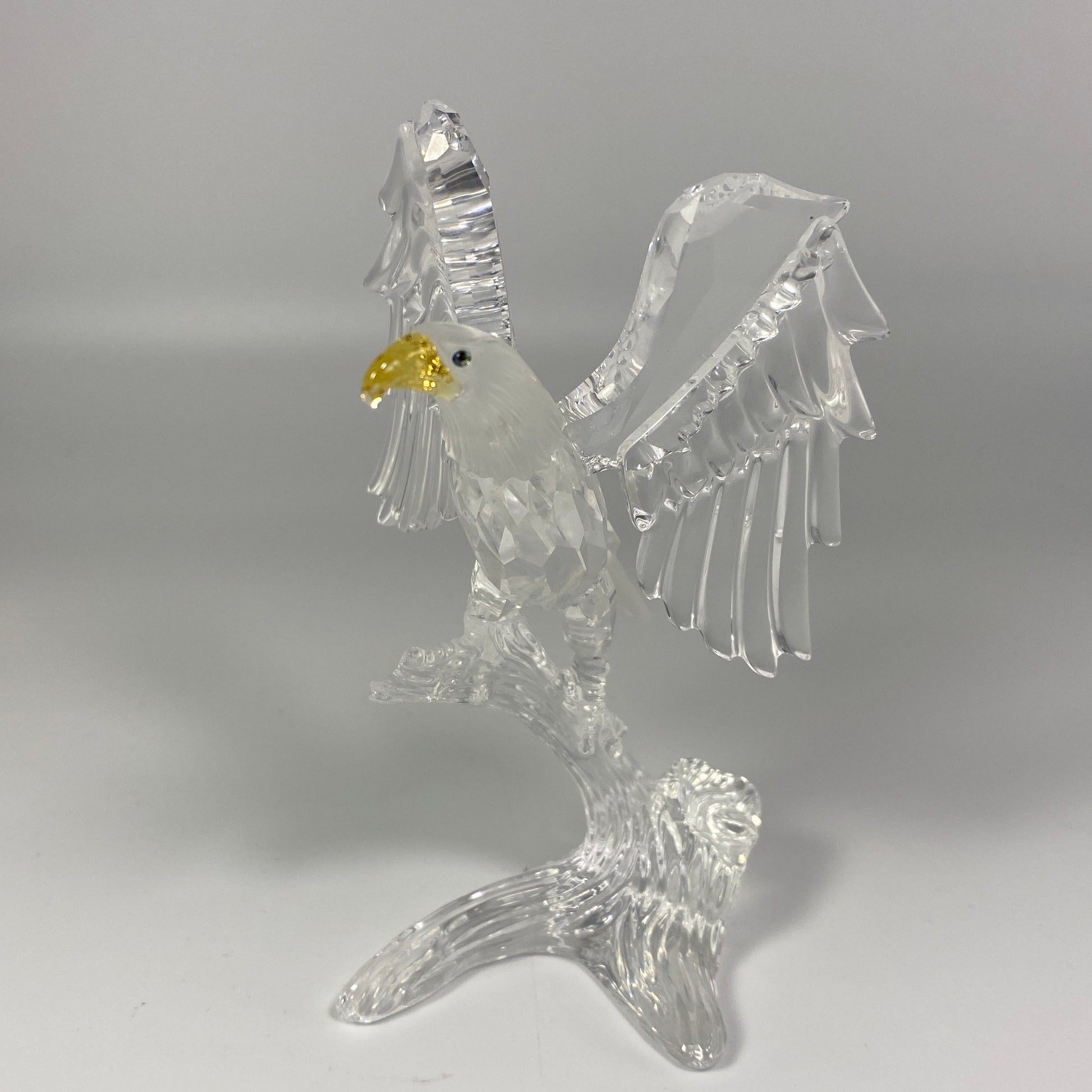 This stunning Swarovski crystal figurine features a majestic bald eagle, designed by Adi Stocker. The intricate details and beautiful crystals make it a perfect addition to any collection, for all occasions. Crafted in Austria, this original piece is made of high-quality materials. Perfect for collectors or as a gift, this Swarovski eagle figurine is sure to impress.